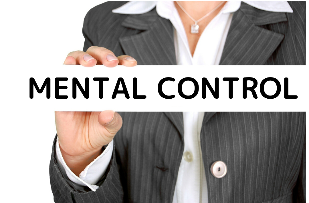 メンタルコントロールの文字を掲げる女性